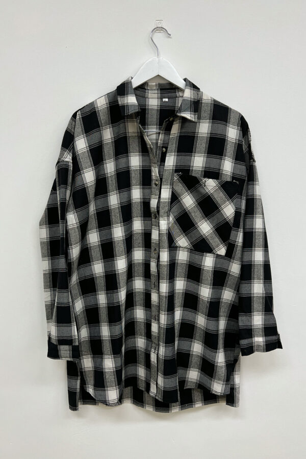 CAMISACO LARGO BLANCO Y NEGRO ESCOCÉS.