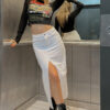 Volver al shopPollera larga, gabardina color negro, rígida, con tajo central en el delantero.
