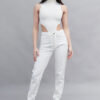 Pantalón mom, denim, rígido, tiro medio, color blanco.