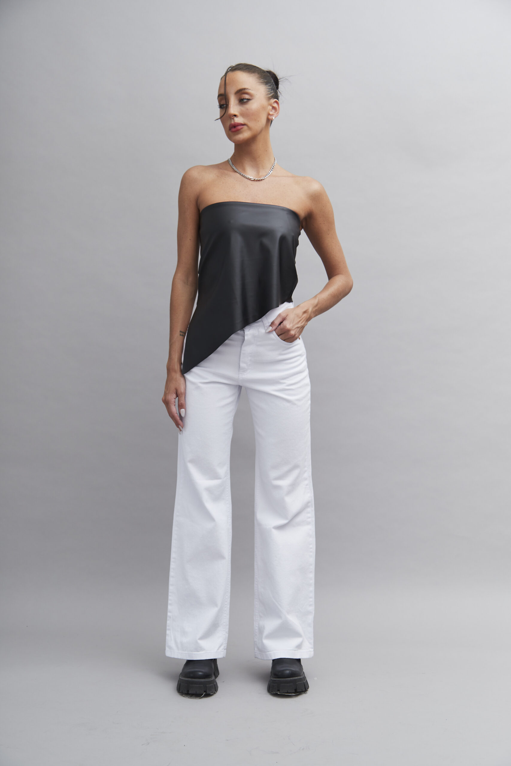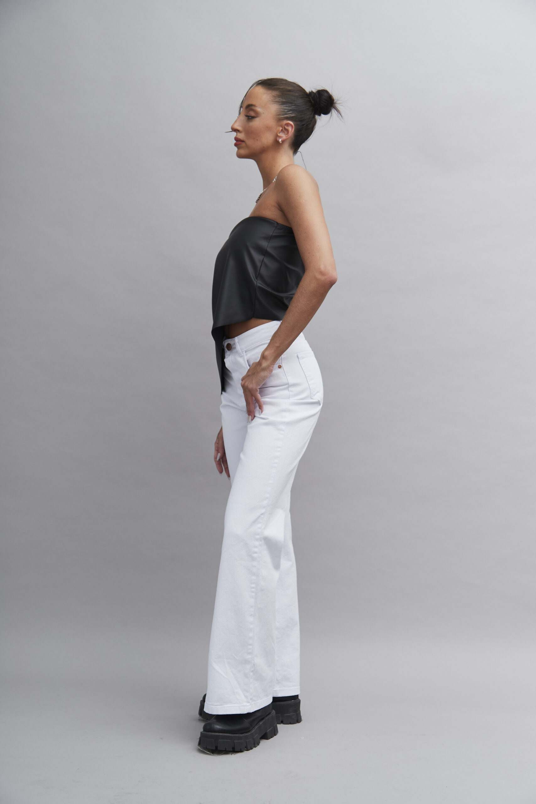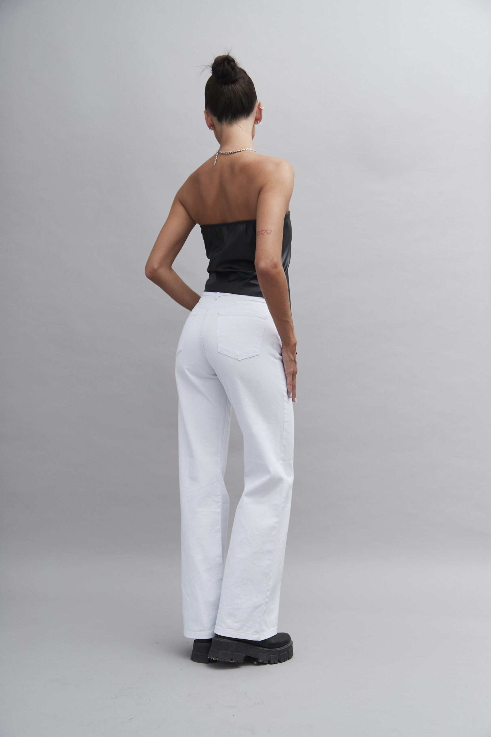 PANTALON RIGIDO WIDE LEG BLANCO.