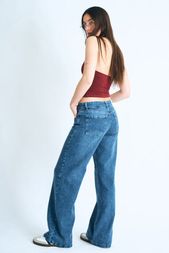 Volver al shopPantalón Wide Leg gris con strass negro en el frente.